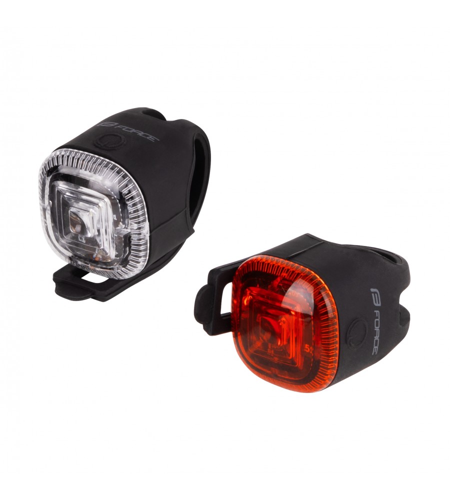 FORCE TWIST set kolesarskih LED luči – prednja in zadnja | močna osvetlitev in utripanje | vodoodporne po standardu IPX4 | baterije priložene